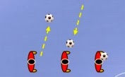 Две группы игроков начинают бежать трусцой. Те, что сзади следом ведут мяч ногой. По сигналу остановка, поворот и смена. Стараться не касаться мячом игроков.